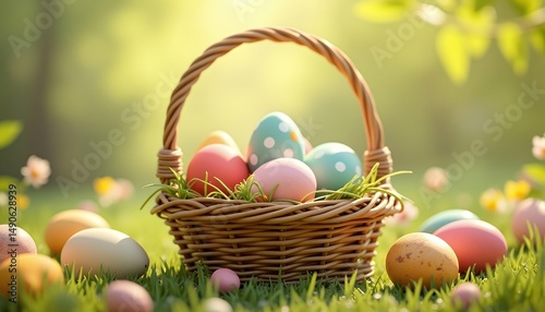 Pastel Easter Eggs in a Rustic Basket: Springtime Delight