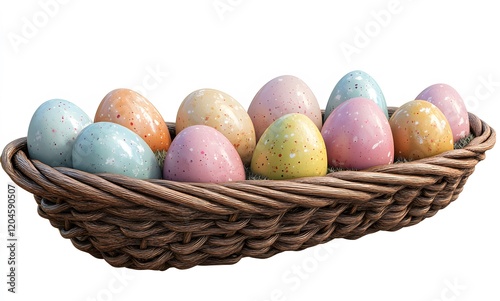 Pastel Easter Eggs in a Wicker Basket