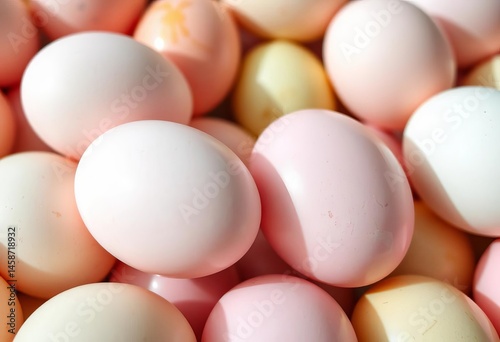 Pastel eggs, glossy sheen, soft shadows, vibrant colors, smooth texture, celebration, Easter
