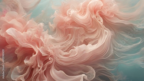 Pastel pink soft delicate fabrics waving abstract background, smooth fluffy cloth texture
