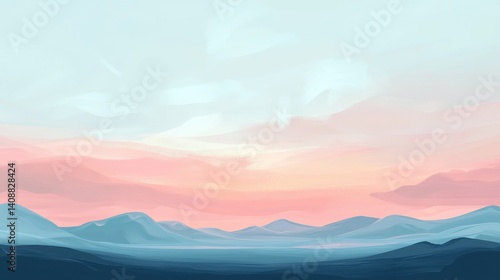 Pastel sunrise over a serene mountain range.