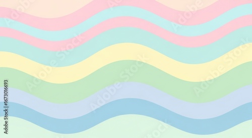 Pastel-colored undulating waves flow horizontally in an abstract pattern with alternating bands of soft hues