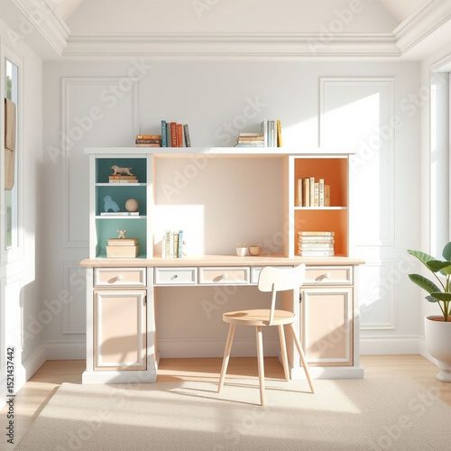 Pastel-Themed Kids Study Table with Upper Book Rack and Side Shelf