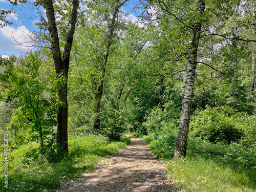 Path among trees in a green summer park