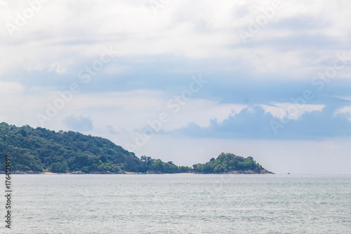 Patong Beach Phuket with turquoise blue water and mountains Thailand.