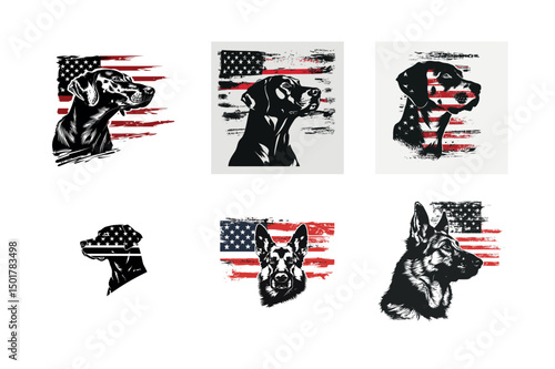 Patriotic dog portraits american flag background
