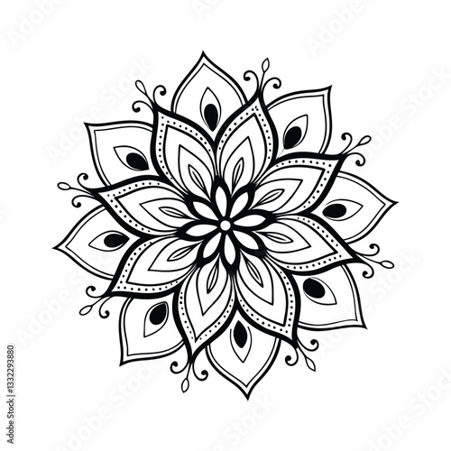 Pattern in the form of a mandala. Henna tattoo mandala. Mehndi style. Decorative pattern in oriental style. Coloring book page.