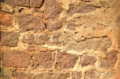 Pattern of Rough Grunge Vintage Stone Wall Texture light yellow Color Background