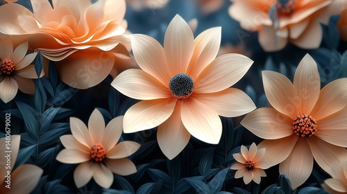 Peach colored flowers blooming in a lush garden