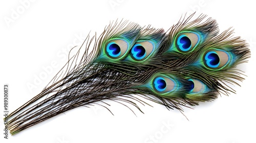 Peacock Feather on White Background, Abstract Image, Texture, Pattern Background, Wallpaper, Cover and Screen of Smartphone, PC, Laptop, 9:16 and 16:9 Format