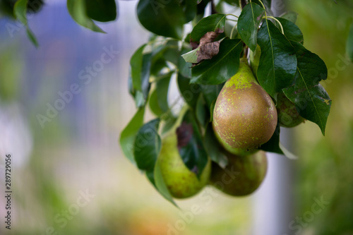 Pears on a pear tree just before autumn, the fruits are ripe