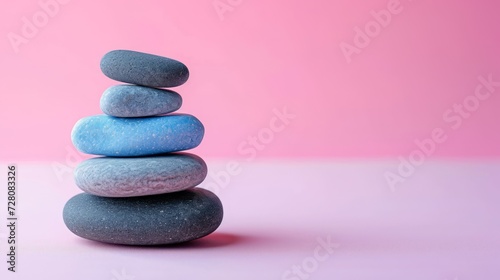 Pebbles balancing, on a pastel background. Sea pebble. Colorful pebbles. For banner, wallpaper, meditation, yoga, spa, the concept of harmony, ba lance. Copy space for text