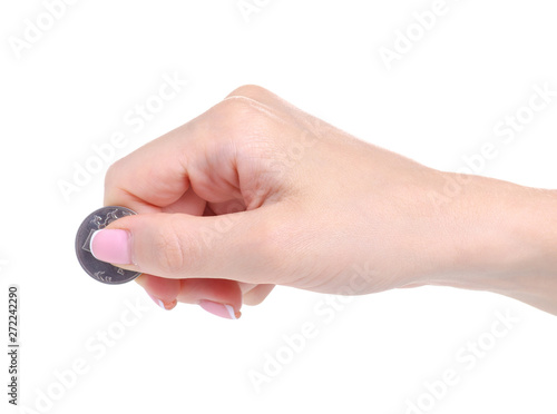 Penny coins in hand on white background isolation