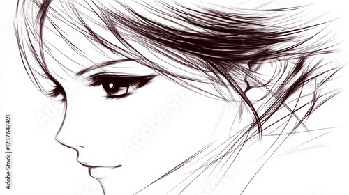 Pensive Anime Girl Profile Sketch, Windswept Hair