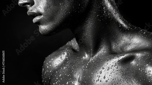 Pensive Man with Wet Skin Under Dramatic Lighting Evokes Deep Emotions and Thoughtful Reflection