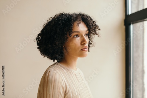 Pensive Woman Looking Out Window