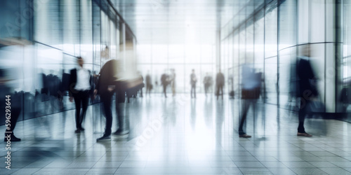 people at modern business office building hallway. motion blur. generative AI
