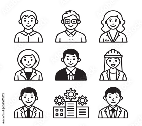 People icon set in flat style. Line icon set. Management line icons. Line Business People. Human resources. office management. with white background Vector illustration.