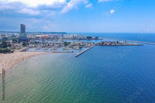 People on the beach at Baltic Sea in Gdynia, Poland.
