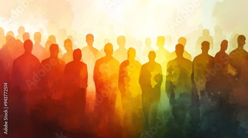 People walking toward the same direction in various colors