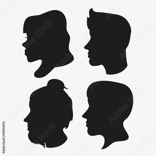 people woman man male female head person human profile silhouette icon. Flat and Isolated design. Vector illustration