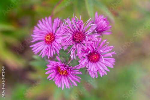 Perennial pink aster flowers in the meadow on an autumn warm day