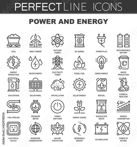 Perfect Line Icons power and energy, coal, wind turbine