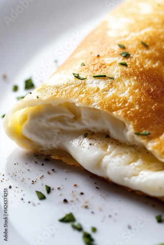 Perfectly cooked egg white omelette with light golden crust, closeup, macro photography