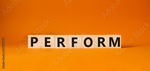 Perform symbol. Concept word Perform on wooden cubes. Beautiful orange background. Business and Perform concept. Copy space.
