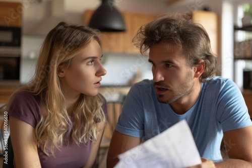 Person examining document with question
