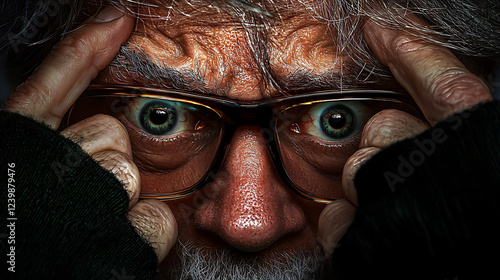 person feeling curious with intense expression and glasses, showcasing deep emotions