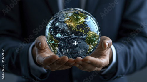 person holding glowing globe representing Earth, showcasing technology and connectivity