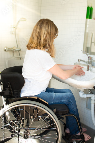 Person in a wheelchair washing hands