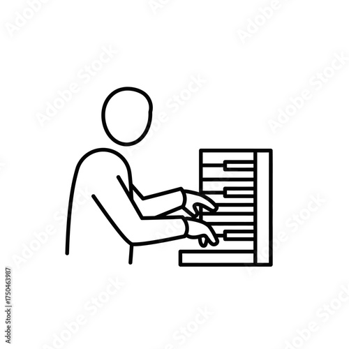 Person playing piano with focused expression in minimalist style, showcasing musical talent and artistic passion, creating a serene and artistic atmosphere.