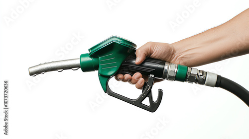 Person Refueling Car with Fuel Pump on White Background