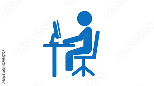 Person working at desk, office, computer, simple illustration, website icon