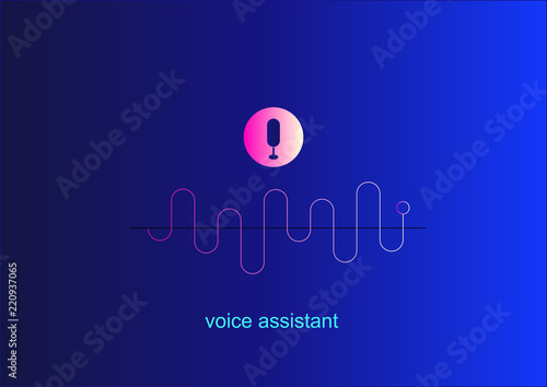 Personal assistant,voice intelligent technologies,recognition concept.Vector illustration of sound symbol intelligent technologies.Microphone button with voice and sound imitation line.