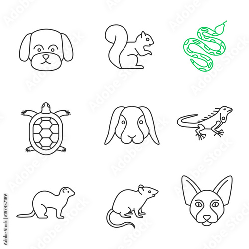 Pets linear icons set