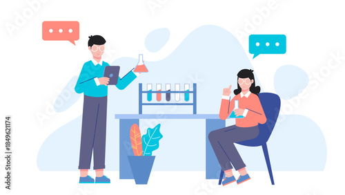 Pharmaceutical Team in Clinical Trial Research. Flat Vector Illustration