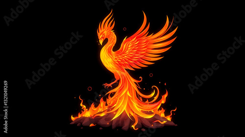 Phoenix Bird, Rising From The Ashes, Symbolizing Rebirth And Renewal.