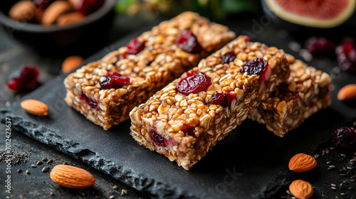 Photo Healthy Homemade Granola Bars with Cranberry and Almonds