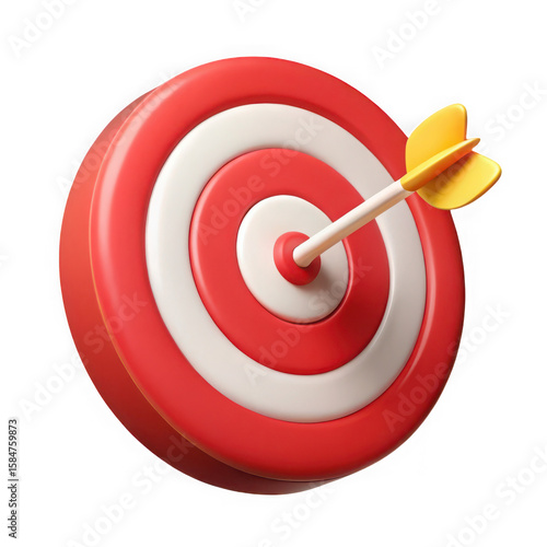 Photo of a red and white target with a yellow arrow isolated on transparent background