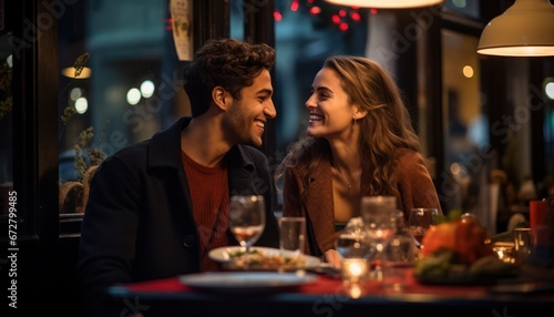 Photo of a Romantic Dinner Date at a Cozy Restaurant With Candlelight and Delicious Food