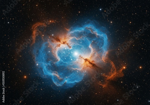 Photo of a Stunning Blue And Orange Nebula with Bright Stars in Space