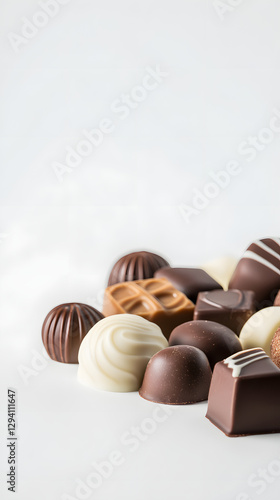 Photo of a variety of chocolates on a white background