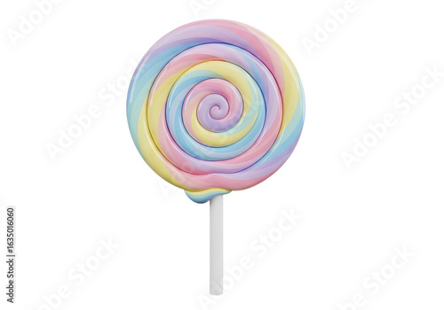 Photo of colorful rainbow swirl lollipop isolated on transparent background