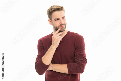 photo of smiling man with stubble hair. man with stubble isolated on white. man with stubble