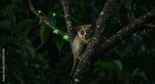 Photo of Tarsier Sitting On Branch With Big Eyes And Green Background