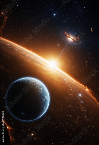 Photo space nebula astronomical scene with Exoplanet
