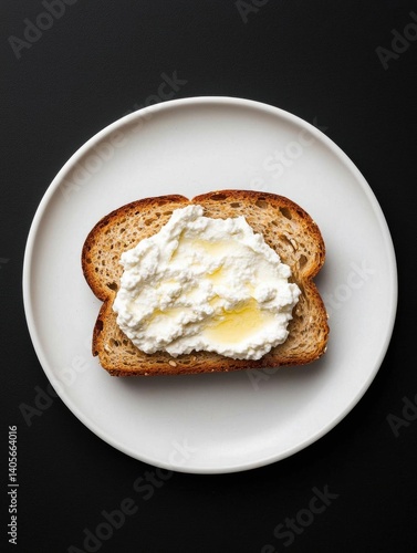 Photograph of a slice of bread on a white plate. the bread appears to be toasted and has a golden brown crust.